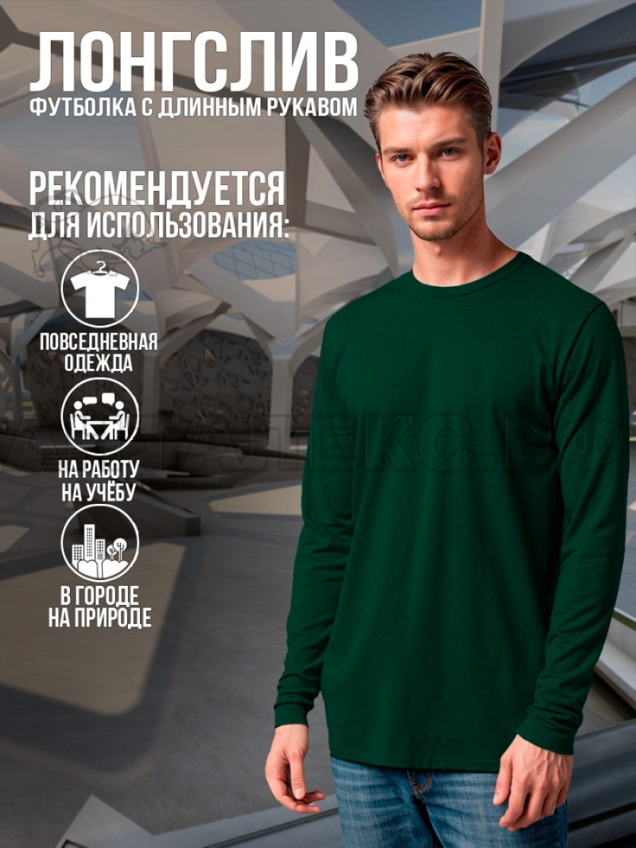Футболка мужская длинный рукав тёмно-зелёная (лонгслив темно-зеленый) - 1 шт.