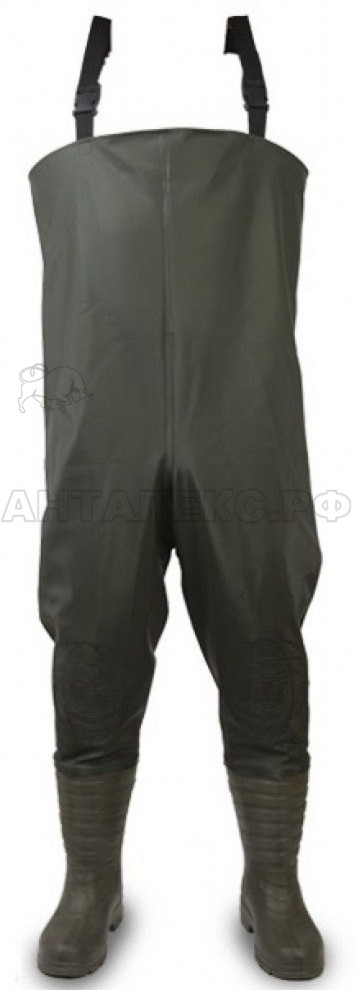 Непромокаемый полукомбинезон - оптимальная одежда для рыбака и охотника. Комбинезон изготавливается из устойчивой к механическим нагрузкам ламинированной ткани "нейлон" с сапогами прикреплёнными методом вулканизации. Сапоги изготавливаются из ЭВА, обеспечивают комфорт и максимальную защиту от механических повреждений, порезов, проколов и зацепов. Размер полукомбинезона регулируется лямками на плечах.