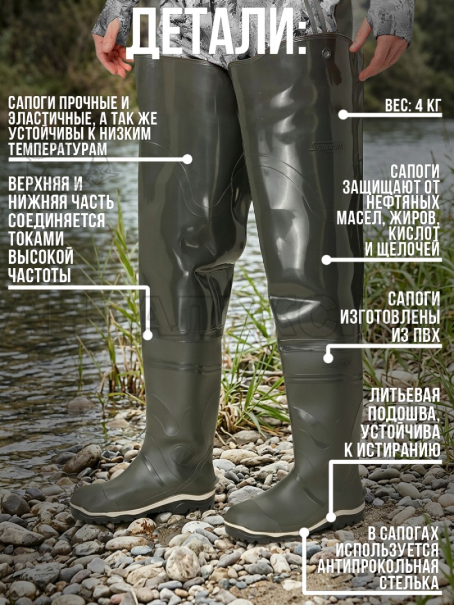 В интернет-магазине Анталекс.рф вы можете купить сапоги рыбацкие мужские из ПВХ, цельнолитые, оптом и в розницу с доставкой по всей территории РФ. Сапоги болотные, предназначены для защиты ног от воды.