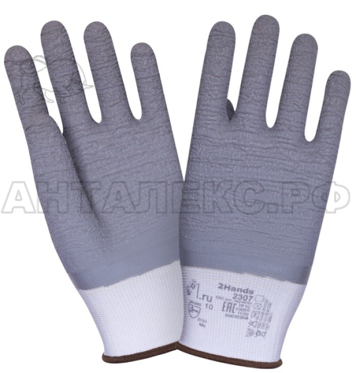 Перчатки 2Hands Latex Full FC (Латекс Фулл эФСи) 2307 для защиты от механических воздействий с полным рельефным покрытием вспененным по технологии Ultrafoam натуральным латексом (1,2-1,5 мм).