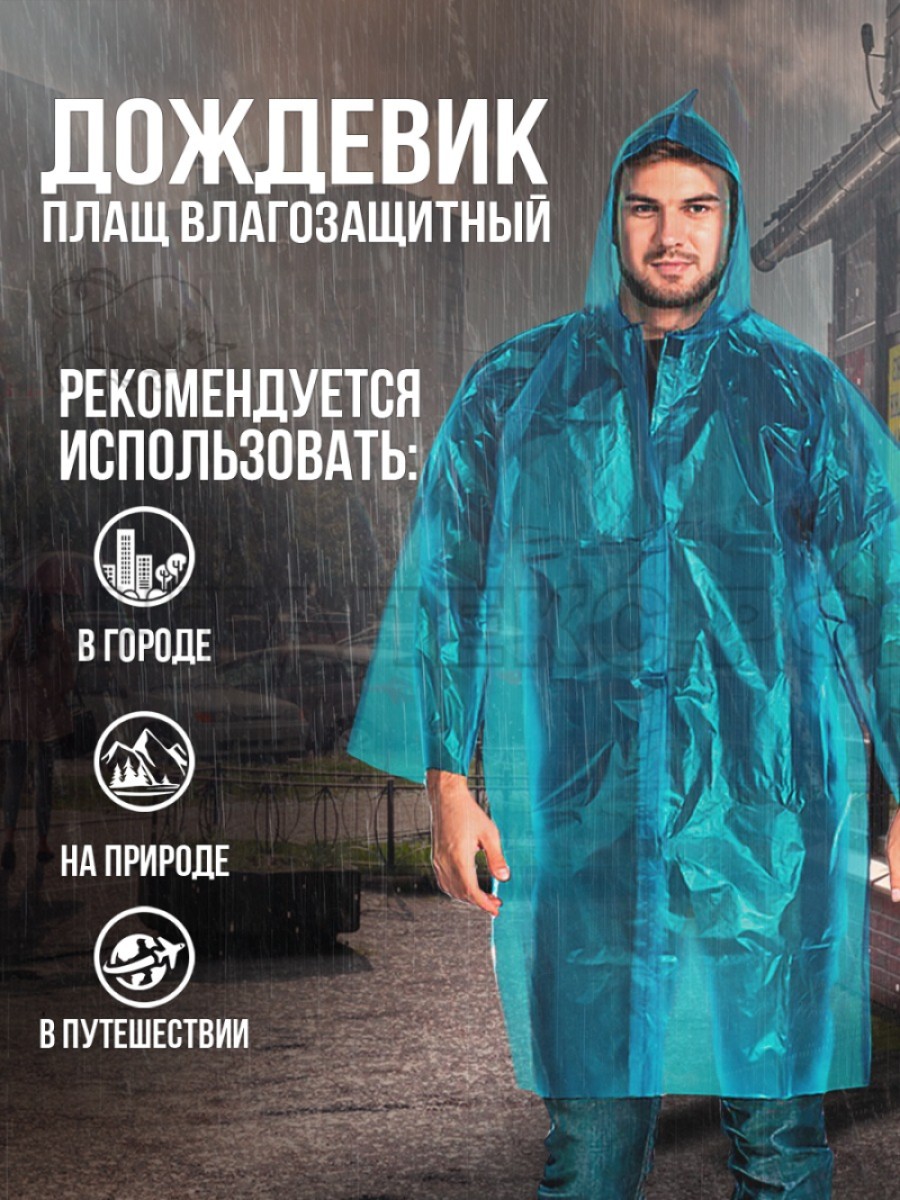 Плащ "Дождевик" имеет прямой силуэт, притачной капюшон и центральную застежку на липучках. Рукава изделия без манжет. Все швы плаща загерметизированы специальной защитной лентой для предотвращения попадания влаги под изделие.