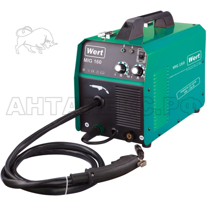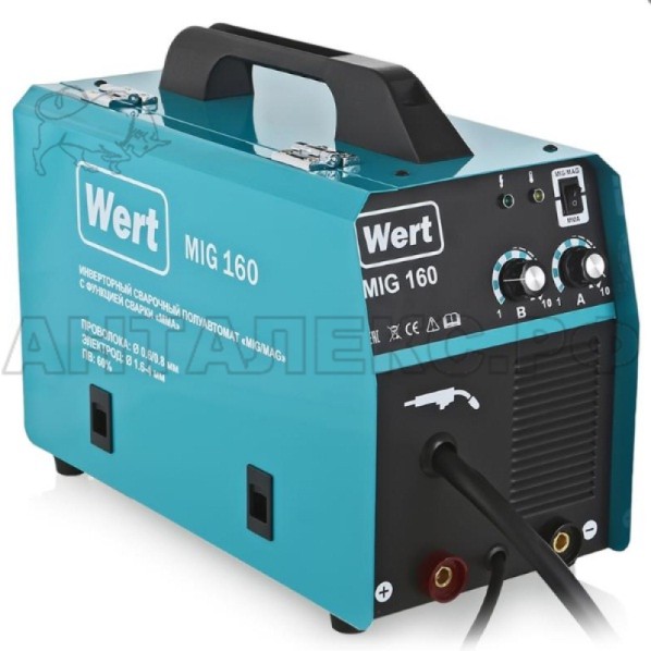 В интернет-магазине Анталекс.рф вы можете купить инверторный сварочный полуавтомат WERT MIG 160 оптом и в розницу по самым низким ценам с доставкой в любой регион РФ. Назначение аппарата - проведение сварочных работ в режиме полуавтоматической сварки проволокой (MIG/MAG/FLUX) и ручной сварки покрытым электродом (MMA). Прекрасно подходит для работы в местах с электроэнергией низкого качества.